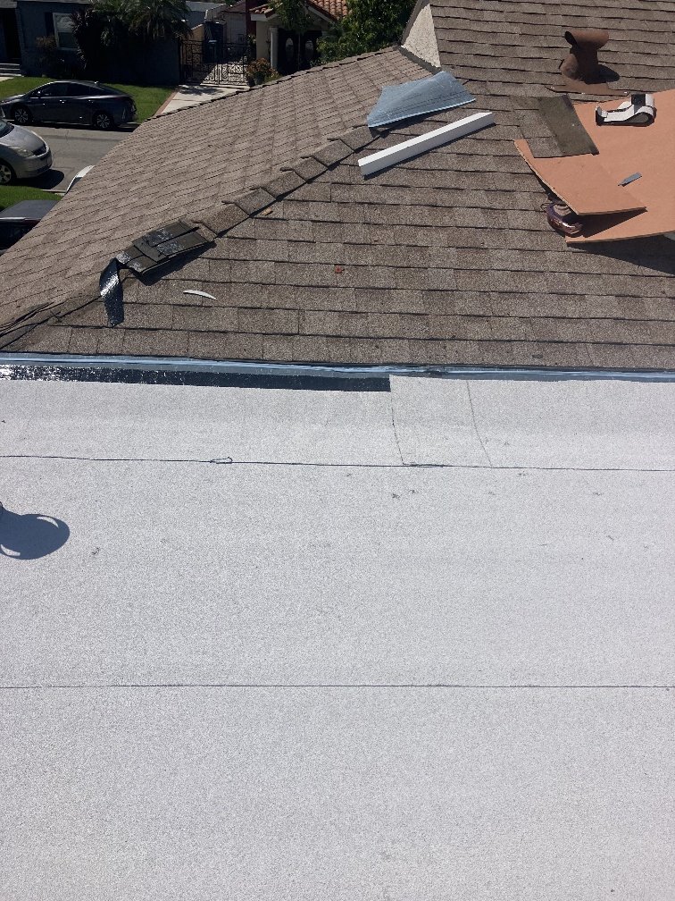This Huntington Beach home chose a white silicone roof coating. The roof was still in serviceable condition and the roof coating system was applied over the existing roof to extend the life of the roof.