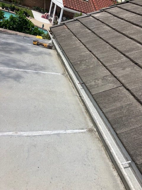 Customer had leak issue in the valley trough areas of the roof. We removed tiles and valley metal from leak areas. We applied new felt paper and heavy capsheet reinforcement to valley areas. Valley metal reinstalled into area. Tiles reinstalled into valleys. Replaced broken tiles during repair. Cause of leak was due to excessive build up of tree debris in valley trough metal.