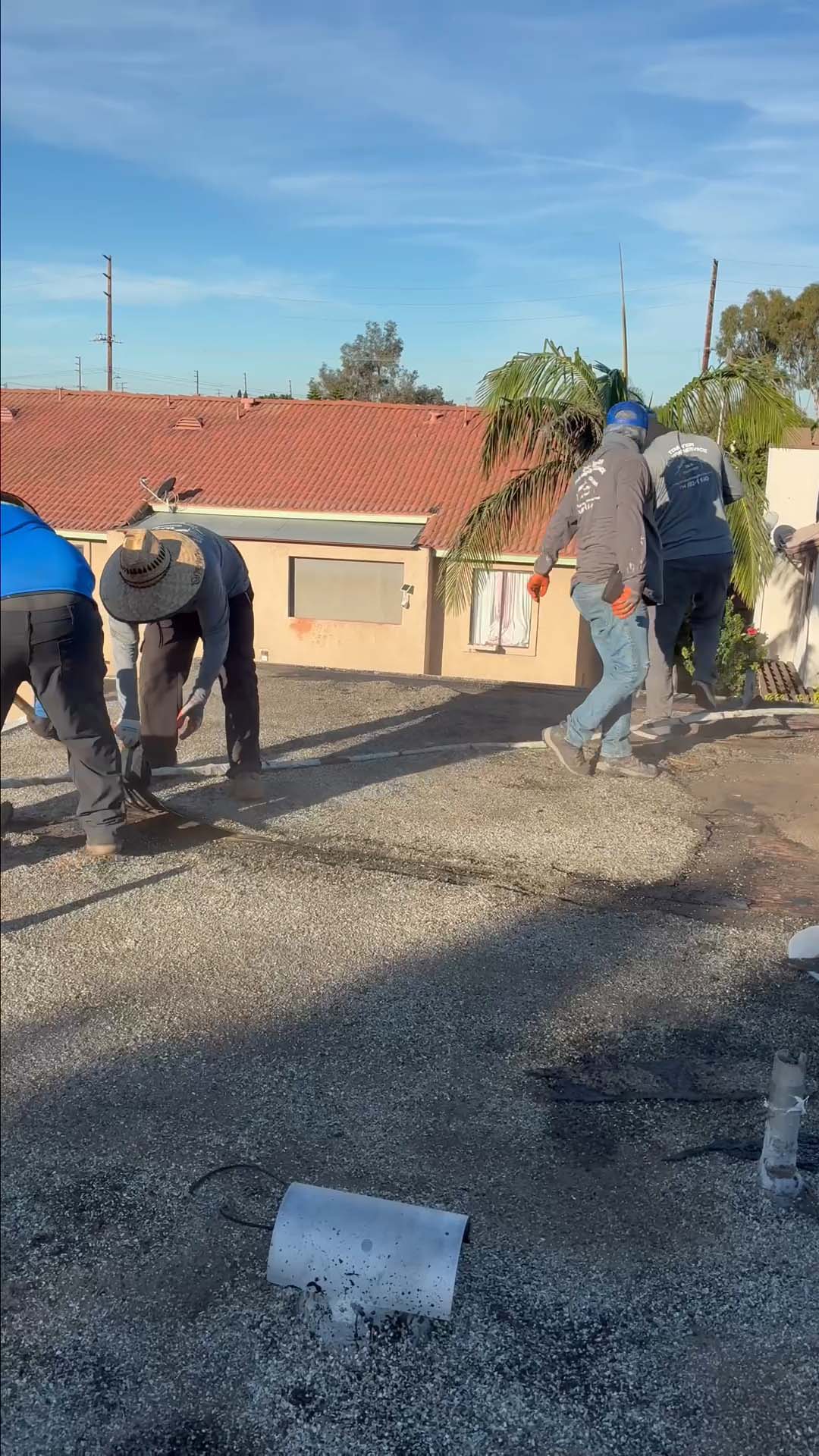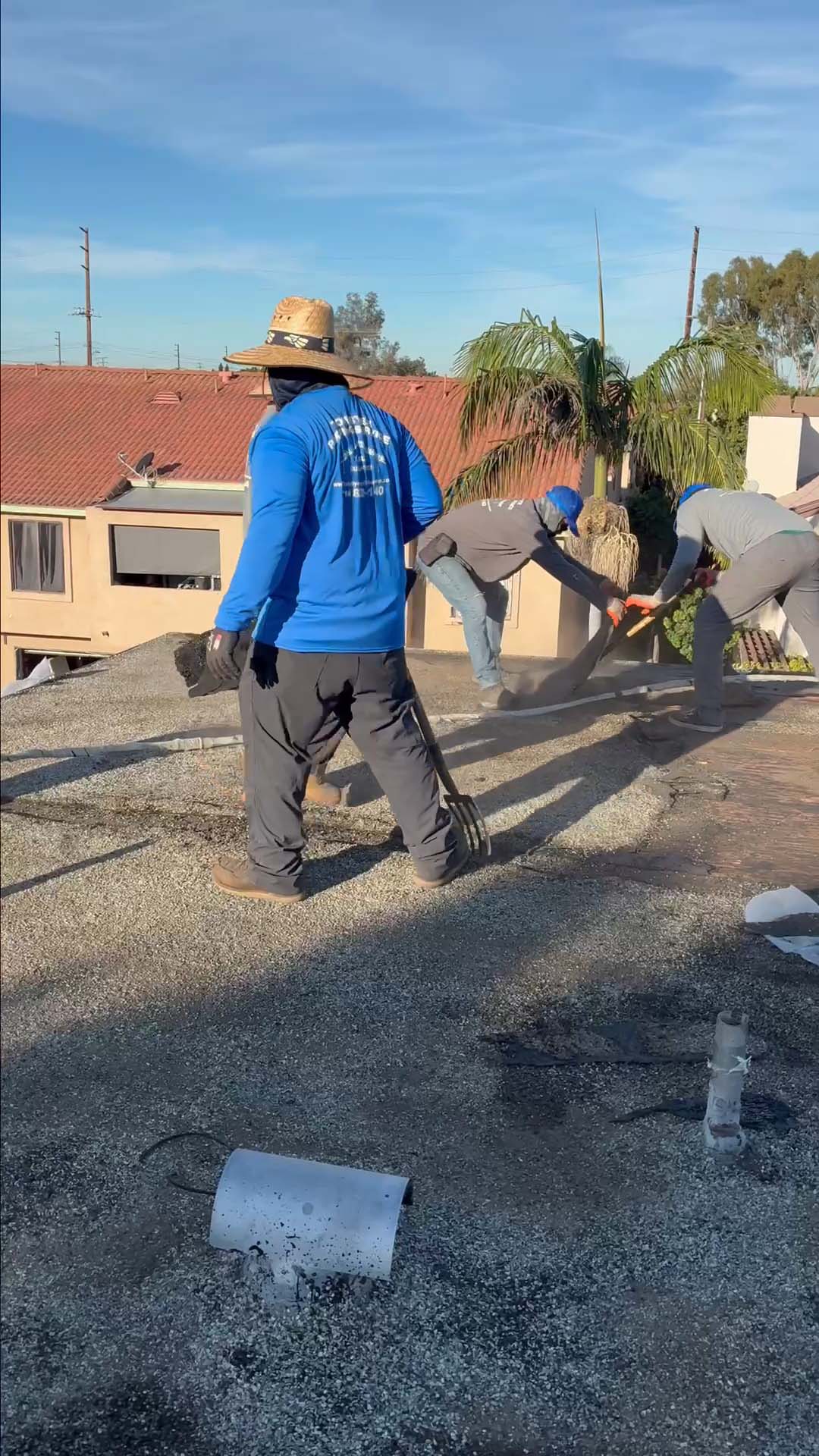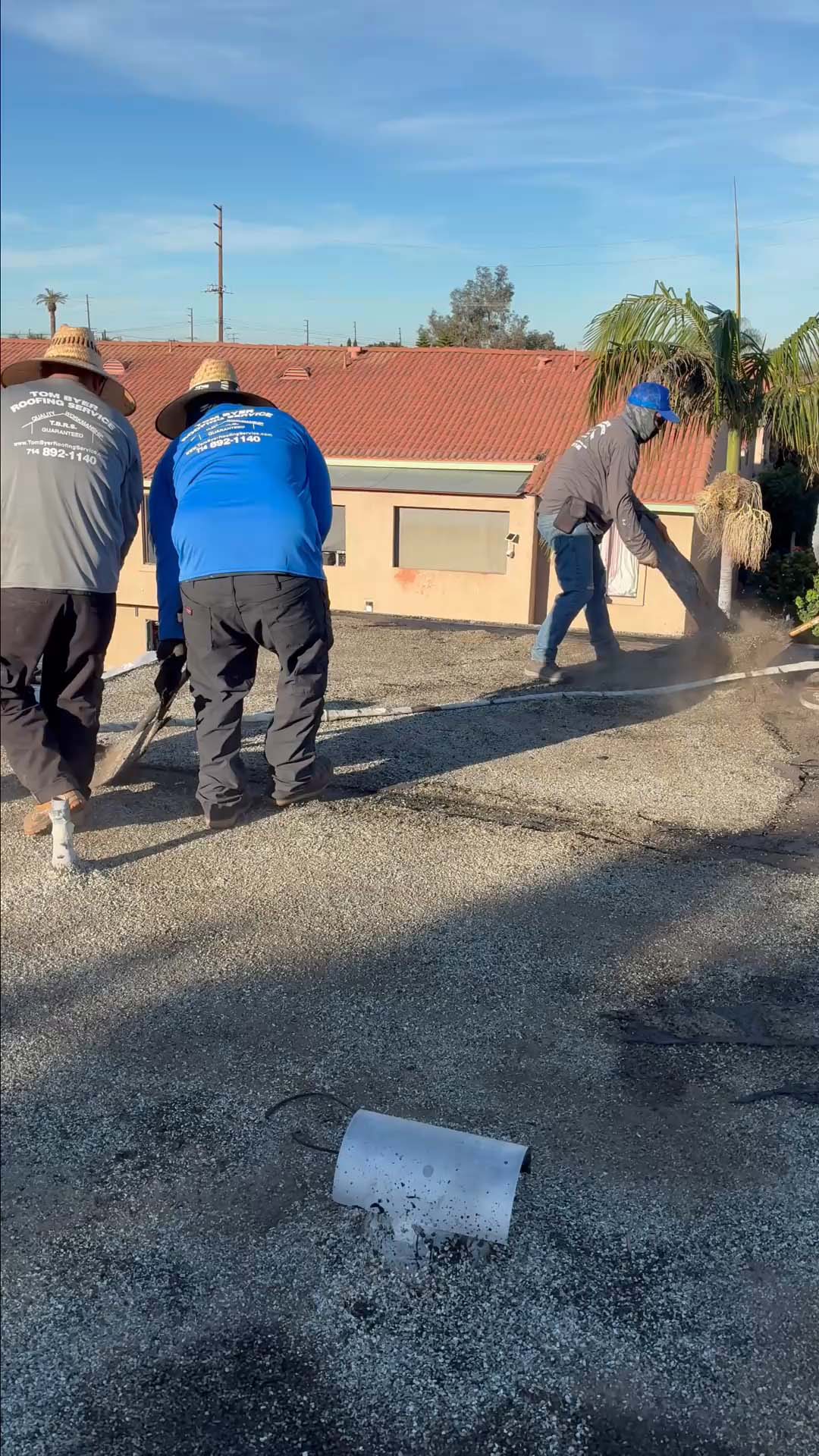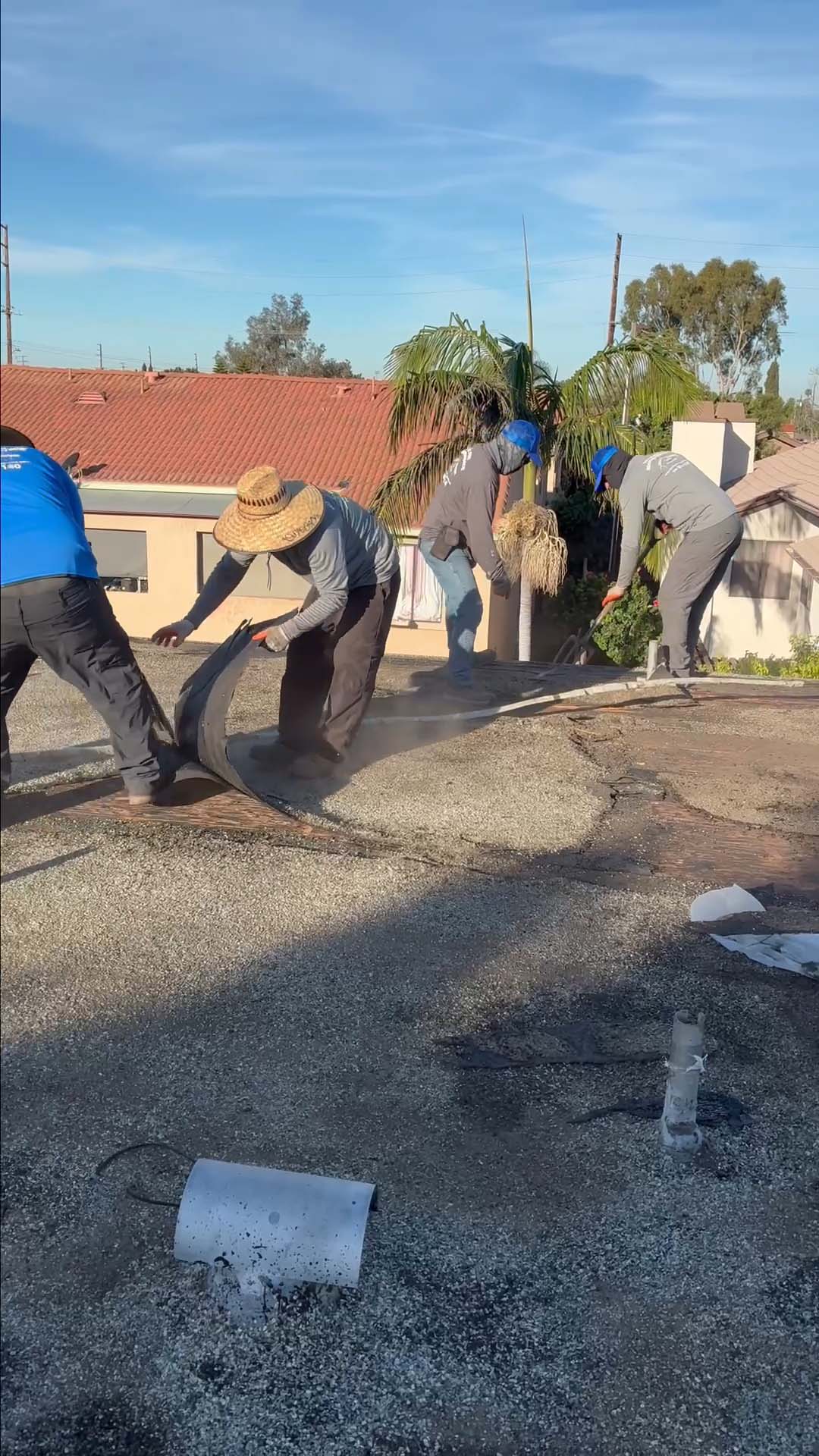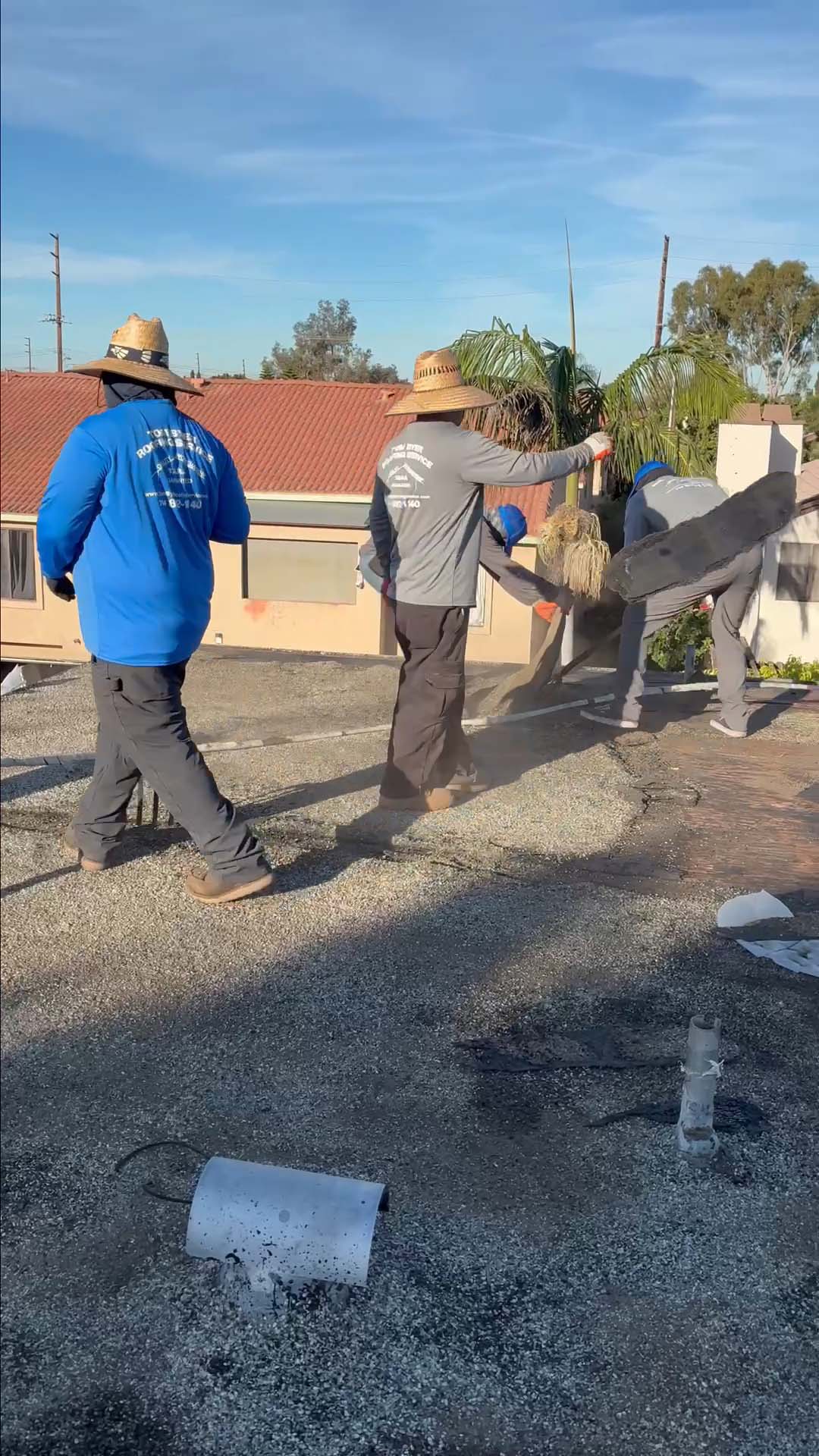 | Project Type Flat Roof Replacement | Scope of Work Full tear-off, deck repair, foam coating with gravel ballast removal | Roof System Title 24 Cool Roof System |